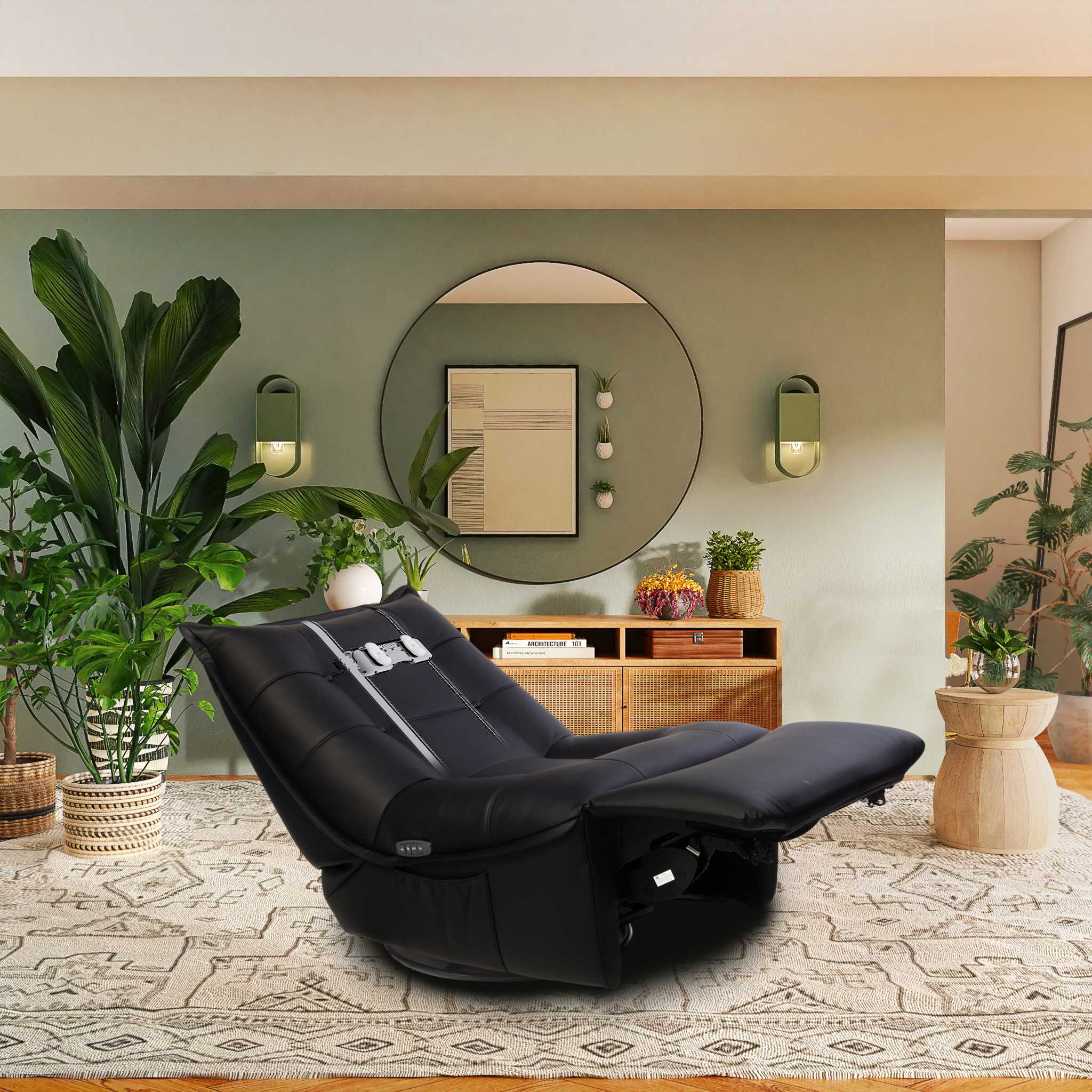 ・双滚轮可动式2D按摩机芯(揉捏、指压) ・隐藏式收纳按摩机芯 ・智能遥控器 ・舒缓按摩自动程序 ・自动抬腿与靠背倾斜功能 ・270°旋转沙发
