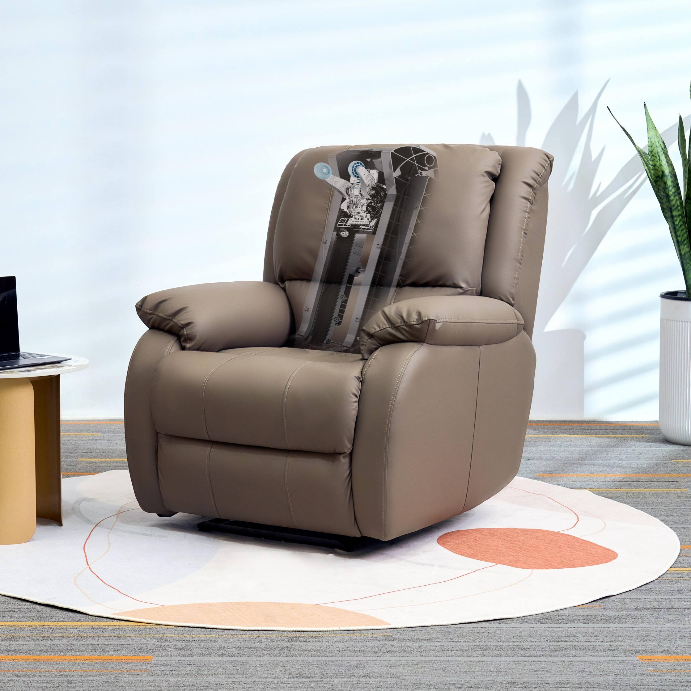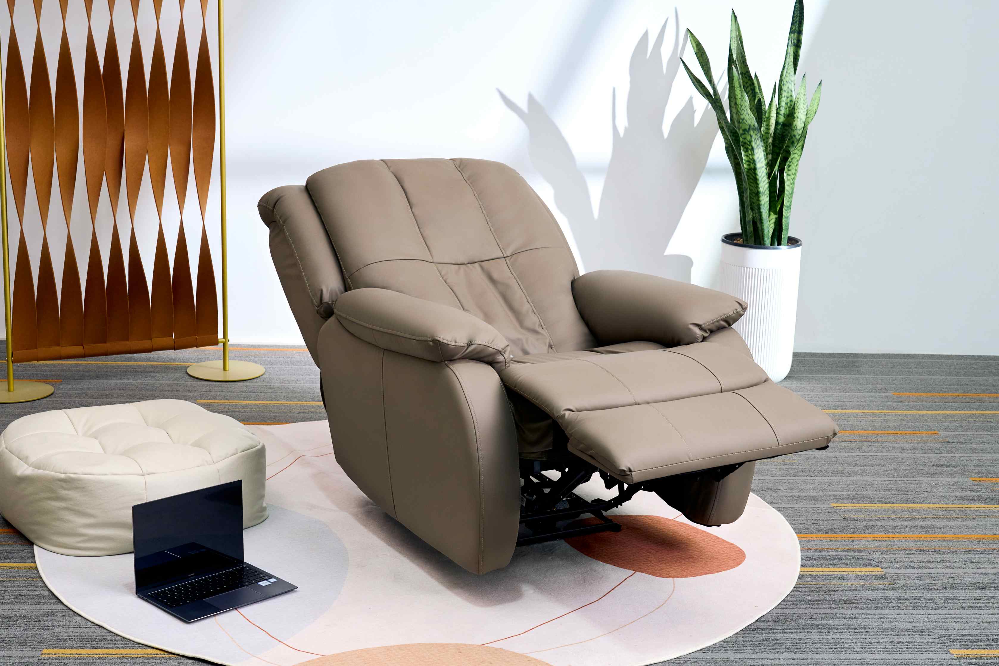 ・自动抬腿板升降与倾斜功能 ・舒适SL柔性轨道移动系统 ・隐形3D按摩机芯 ・揉捏、叩击、滚轮、指压按摩模式 ・PU皮革材质